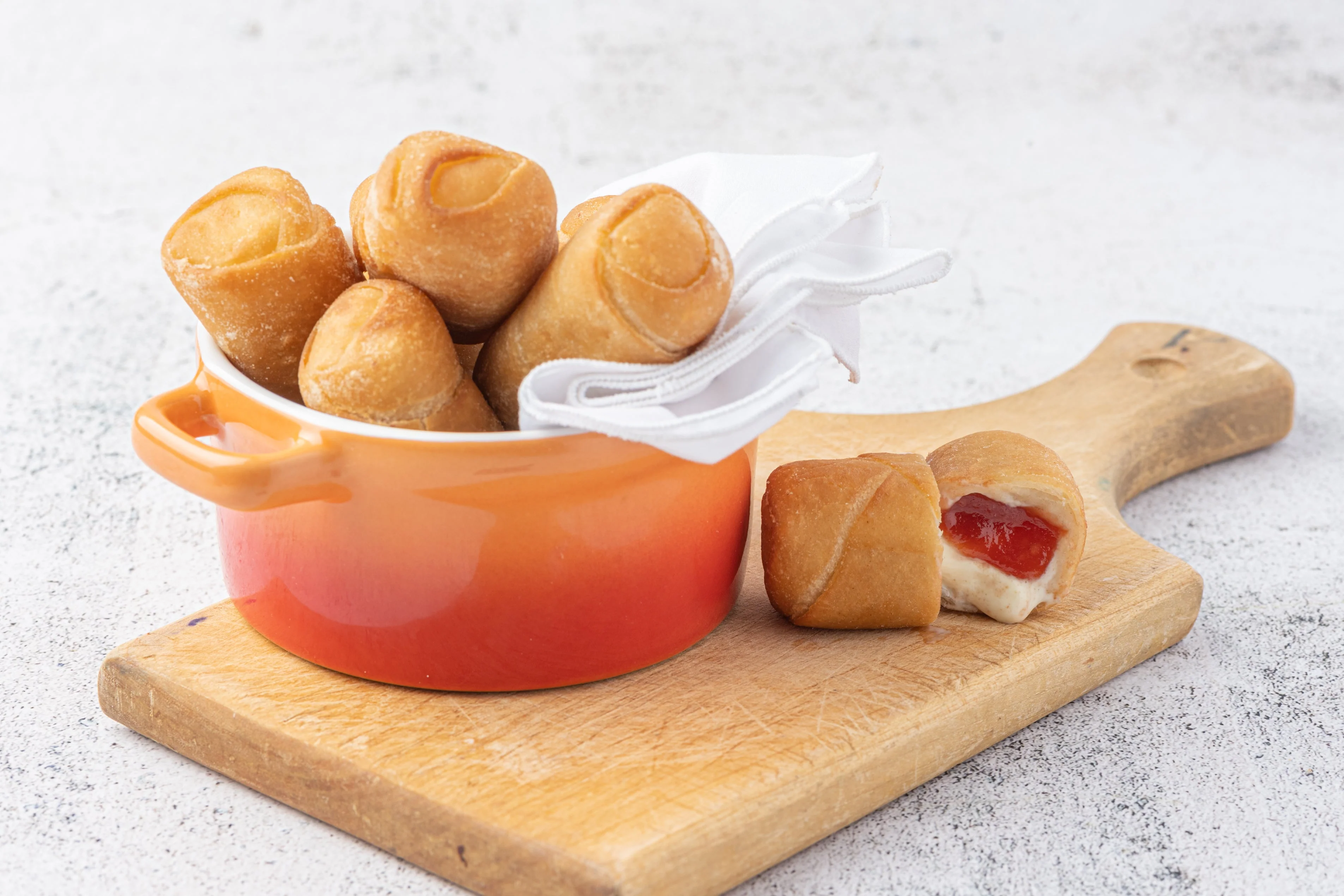 Un tequeño de Guayaba es una pieza de abundante queso blanco con guayaba envuelto en una delgada y crujiente masa, manteniendo intacta nuestra receta familiar.